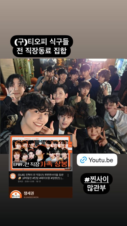 ※元TOP MEDIAの仲間たちで、元? UP10TIONの이진혁(LEE JIN HYUK) イ・ジニョクさんのYouTubeチャンネルに出演されたようです。ほんとにうれしい(^▽^)