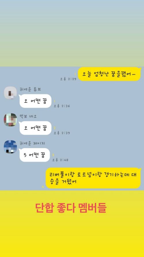 チャニョン「리버풀 이랑 토트넘 이랑 경기하는데 대 승을 거뒀 어(リバプールとトッテナムと試合で大勝利をおさめた)」