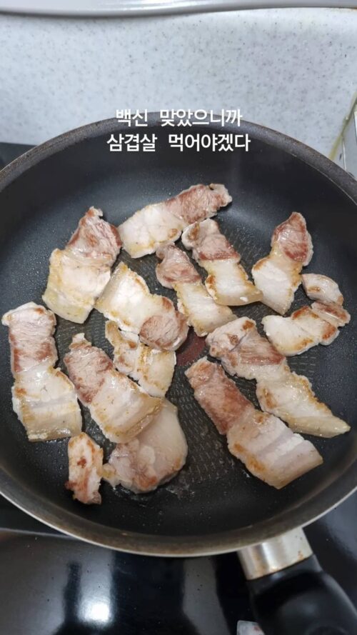 백신 맞았 으니까 삼겹살 먹어야겠다