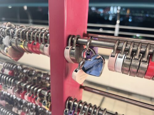 アクアシティお台場3F海側デッキの特設フェンスに、3人の願いを込めて南京錠をかけました🔐