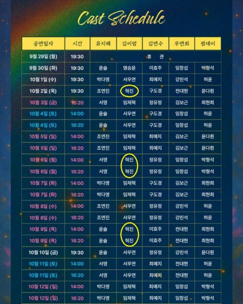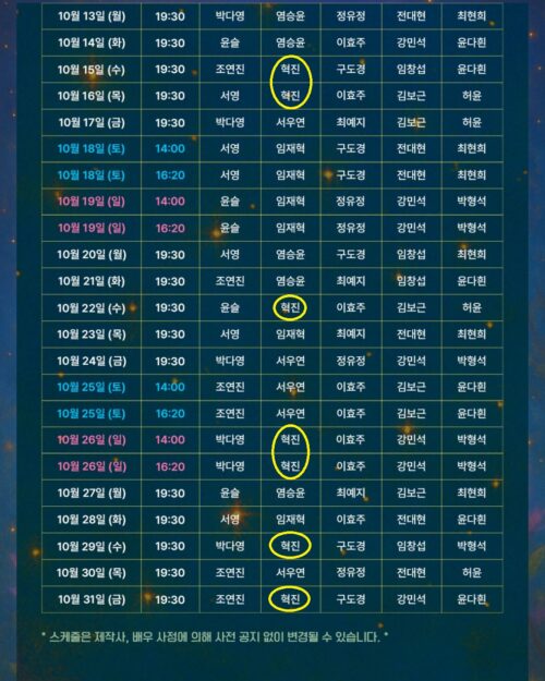 *스케줄은 배우, 제작사의 사정에 의해 사전 공지 없이 변경될 수 있습니다.*