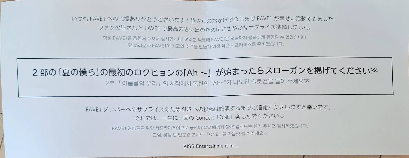 ※入口でキッスエンターテイメントさまより配布。メンバーはステージから目をこらしていましたが、漢字が多く??な表情だったかも^^