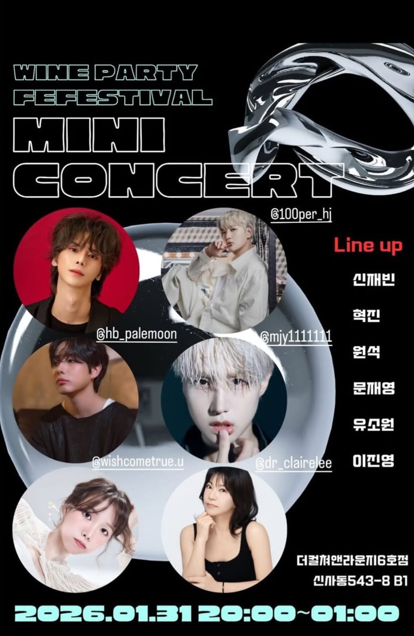 😭 다양한 장르와 분위기를 함께 즐겨주시고 와인 및 푸드도 편하게 즐겨주시면 감사하겠습니다!