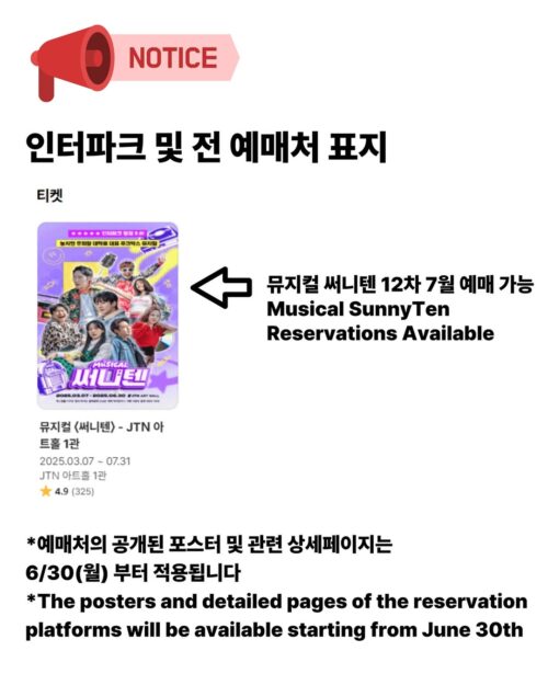 📍뮤지컬 써니텐 12차 티켓 오픈 공지
