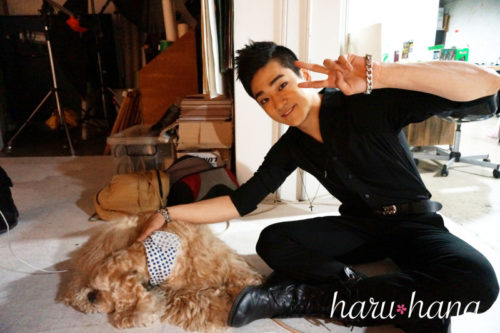 ソロ撮影カメラのときも、写真をチェックするときも、カメラマンさんの愛犬・ユルムくんと遊ぶときも笑顔炸裂でした