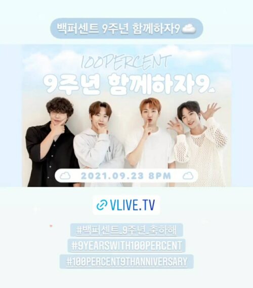 #백퍼센트 의 데뷔 9주년을 축하합니다💙
