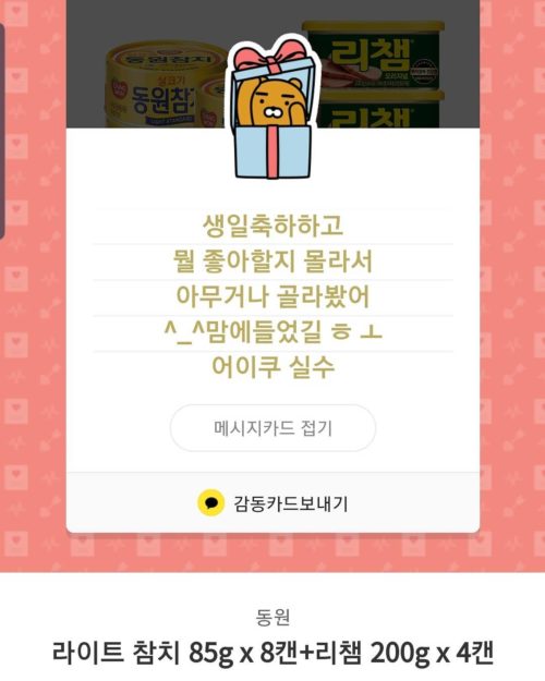 생일 축하하고 뭘 좋아할지 몰라서 아무거나 골라 봤어 ^ _ ^