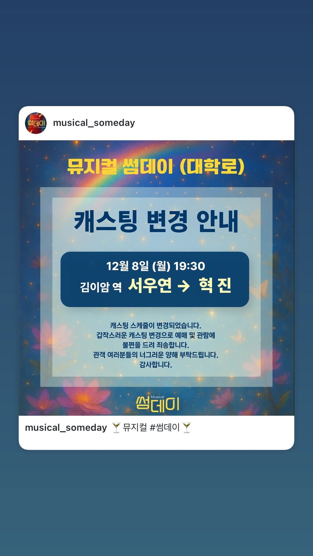 ミュージカル썸데이(someday)12月8日ヒョクジン出演!