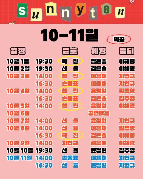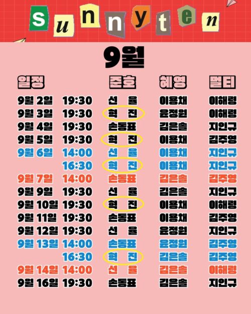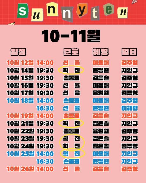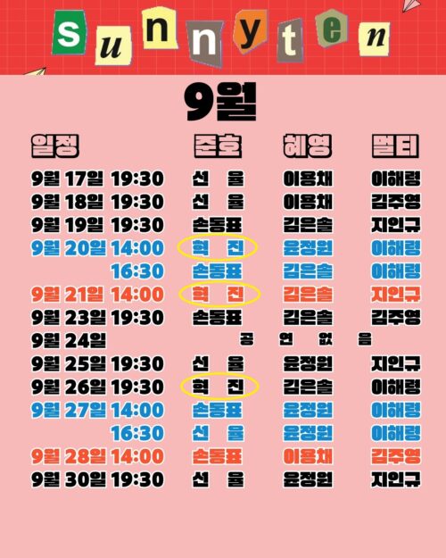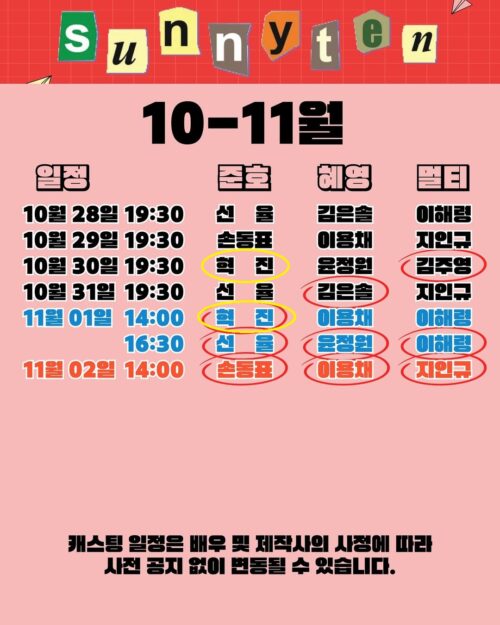 2025.07.01. ~ 2025.11.02 大学路演劇ミュージカル「써니텐(ソニテン)SunnyTen」出演決定!