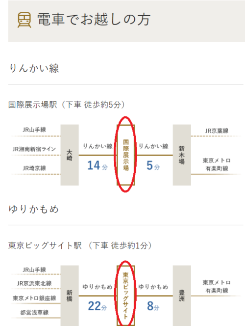 ■りんかい線「国際展示場」駅から出口C方向へ出て、徒歩約5分